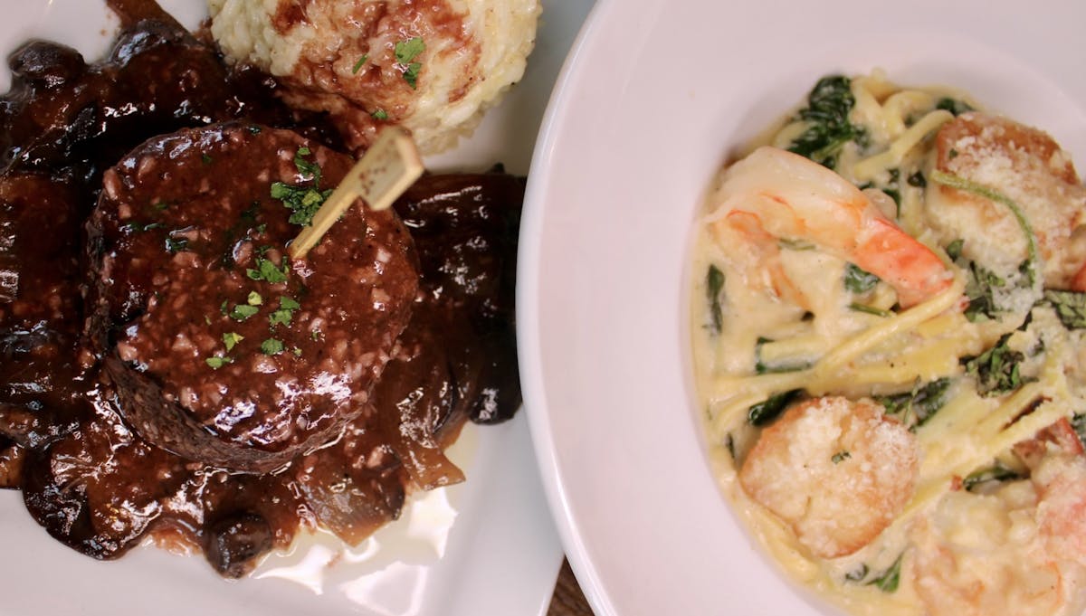 Wild mushrooms, caramelized onions, Cabernet sauce, cheddar